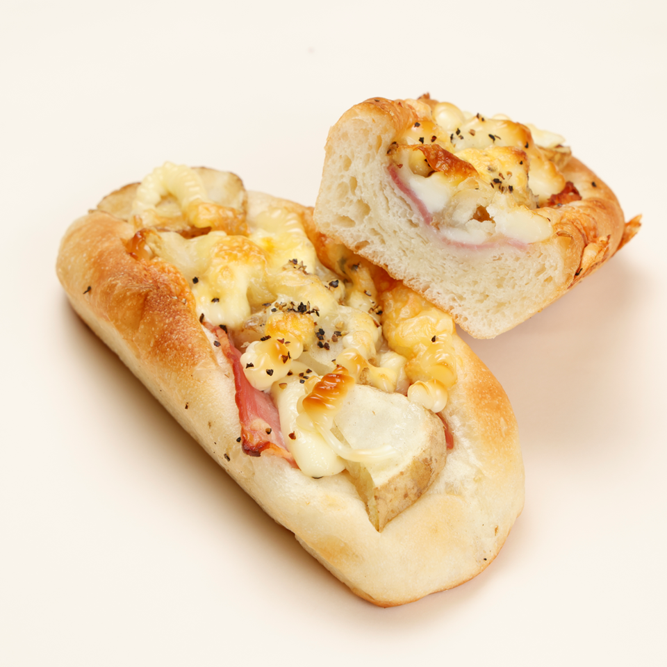 3種のチーズがとろける濃厚ラザニア風フィリングとジューシーなベーコンを、ふんわりバターロールでサンドした食べ応えのあるホットサンドです。
